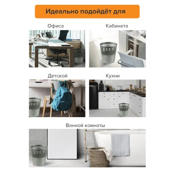 Корзина для бумаг и мусора Uni, 10 литров, пластик, сетчатая, серая — Характеристики
