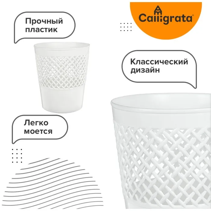 Корзина для бумаг пластик сетчатая 12л Uni "Офис-Класс", белая — Характеристики