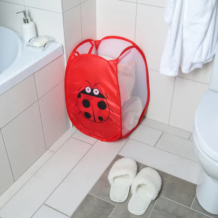 Корзина для игрушек складная Доляна «Божья коровка», 32×32×52 см, красная — Характеристики