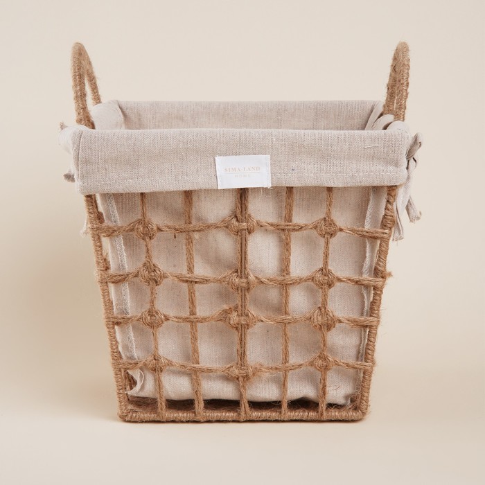 Корзина для хранения Доляна «Айко», плетёная, ручной работы, с ручками, 21,5×21,5×16,5 см, бежевая — Характеристики