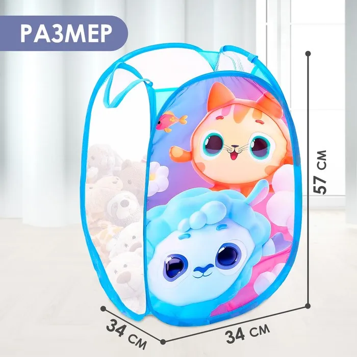 Корзина для хранения игрушек «Малыши-кругляши», 57 х 34 х 34 см, голубая — Характеристики