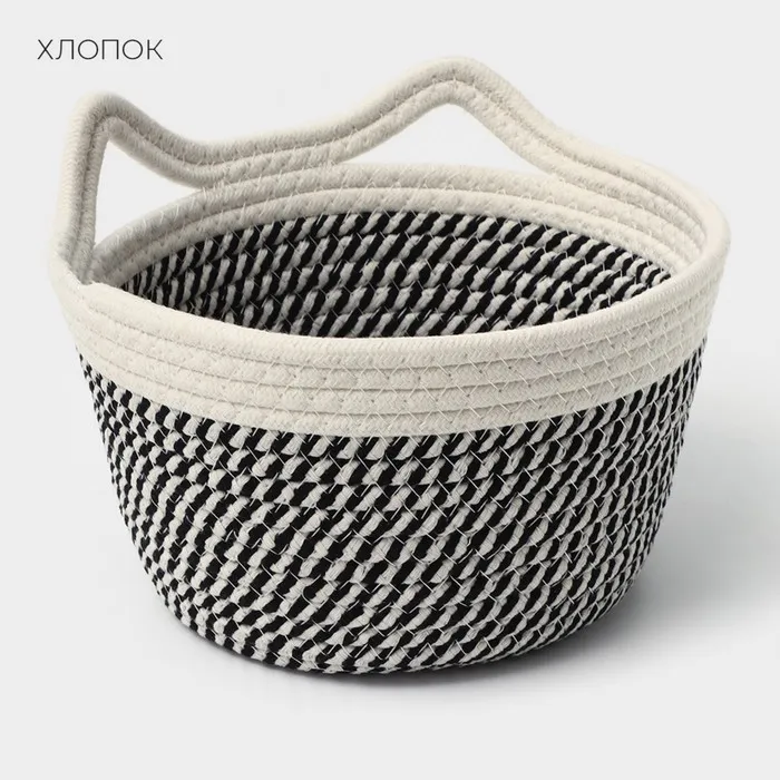 Корзина для хранения LaDо́m «Кэтс», плетёная, ручной работы, с ручками, хлопок, 22×22×12.5 см — Характеристики