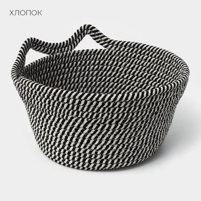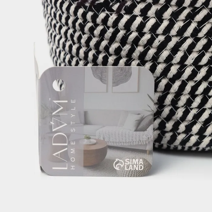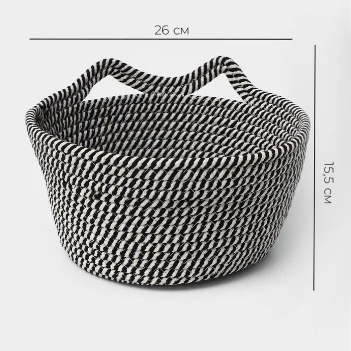 Корзина для хранения LaDо́m «Кэтс», плетёная, ручной работы, с ручками, хлопок, 26×26×15.5 см, чёрная — Характеристики