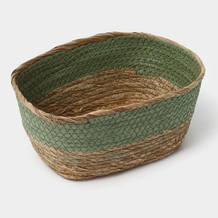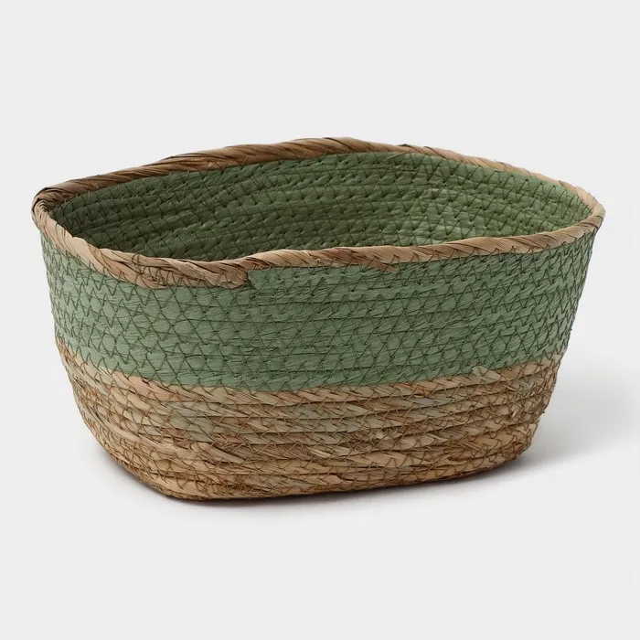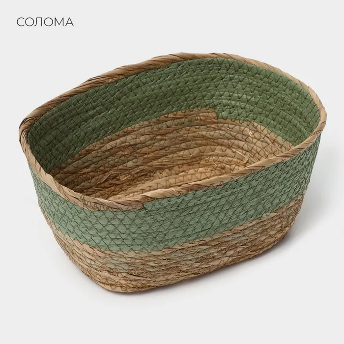 Корзина для хранения LaDо́m «Лео», плетёная, ручной работы, солома, 25×18×12 см, зелёная — Характеристики