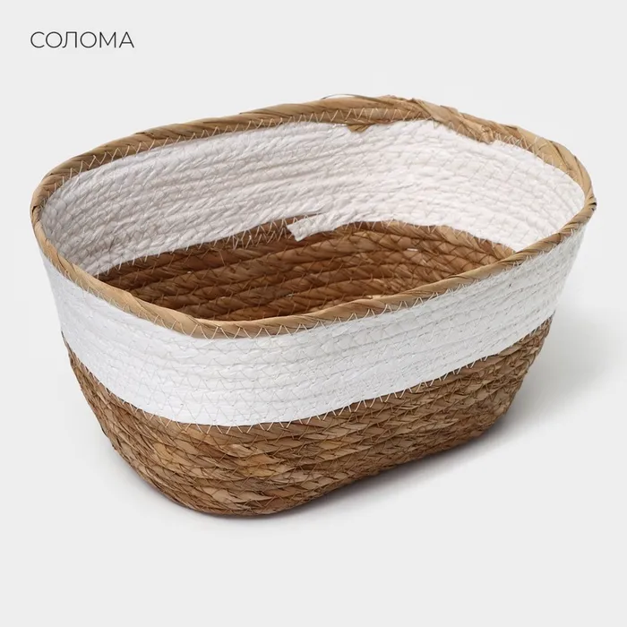 Корзина для хранения LaDо́m «Лео», плетёная, ручной работы, солома, 27×18×12 см, белая — Характеристики