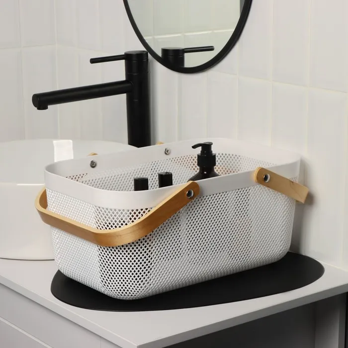 Корзинки представляют собой практичные и удобные контейнеры для хранения различных вещей. Они имеют различную форму и сделаны из прочного пластика. На верхней части корзинок расположена удобная деревянная ручка, которая позволяет легко переносить их с места на место.