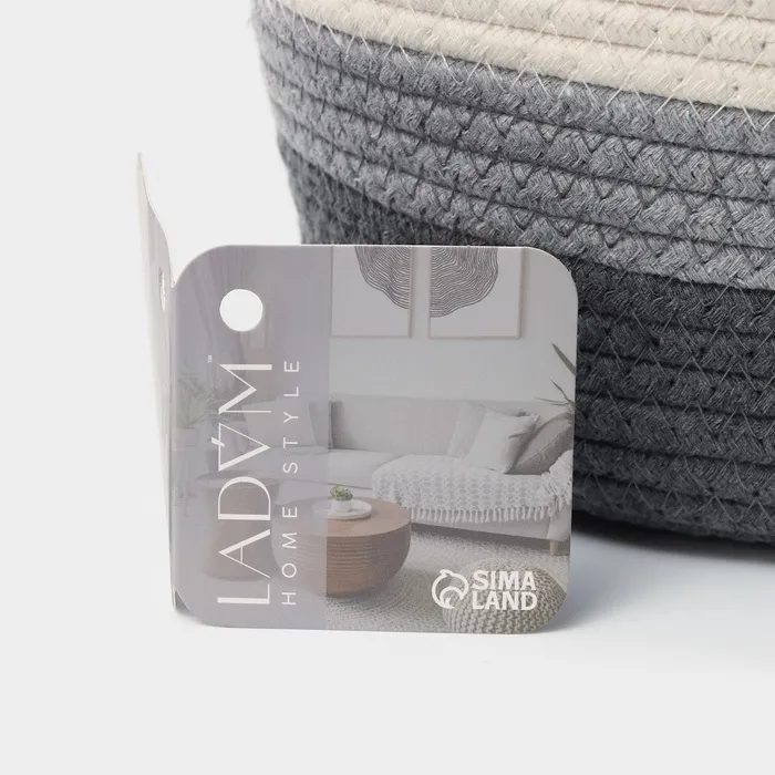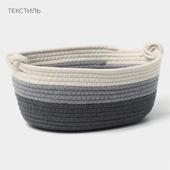 Корзина для хранения LaDо́m «Вега», плетёная, ручной работы, с ручками, хлопок, 32×21×14 см, серая — Характеристики