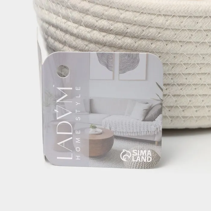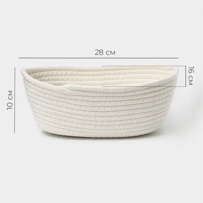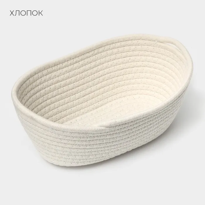 Корзина для хранения LaDо́m «Вера», плетёная, ручной работы, с ручками, хлопок, 28×16×10 см, белая — Характеристики