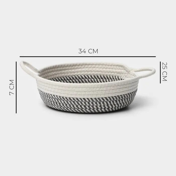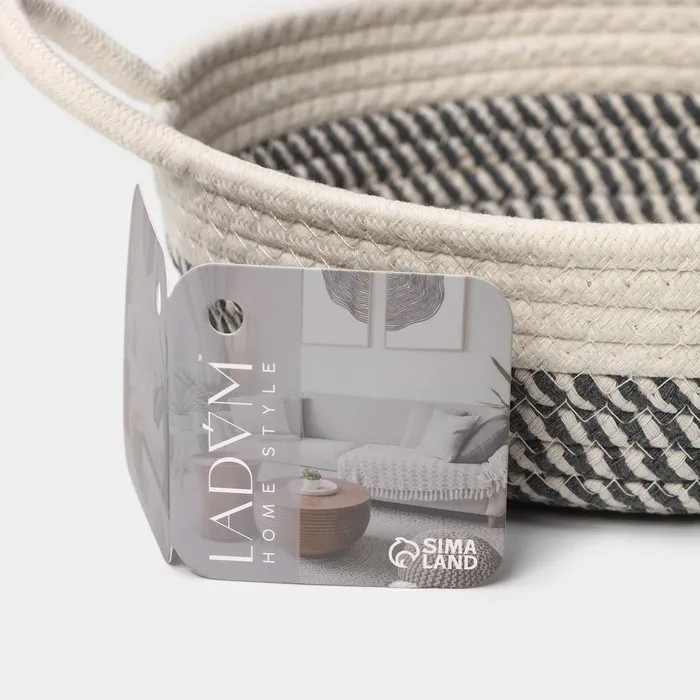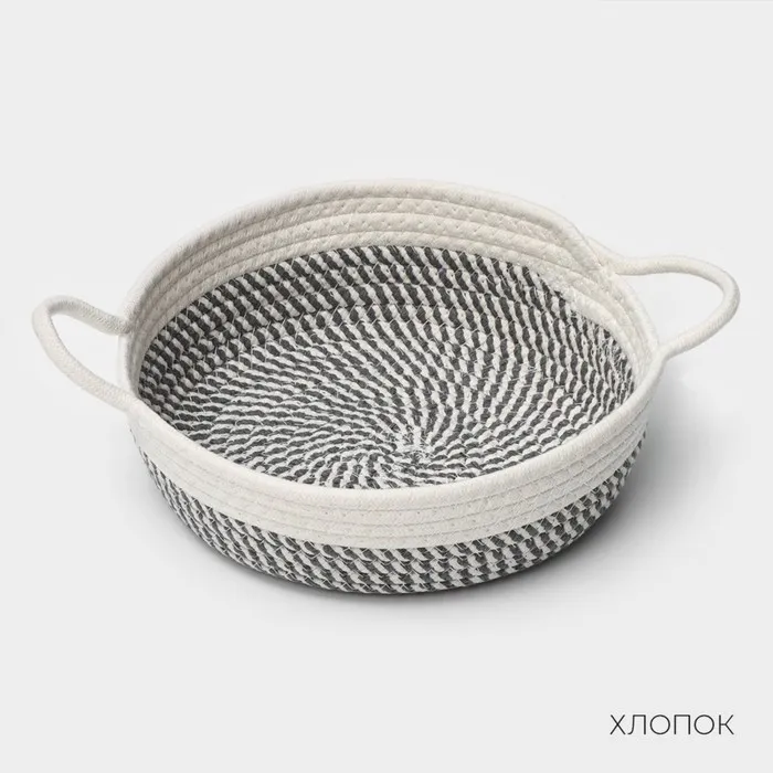 Корзина для хранения LaDо́m «Визави», плетёная, ручной работы, с ручками, хлопок, 34×25×7 см, серая — Характеристики