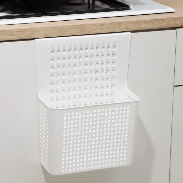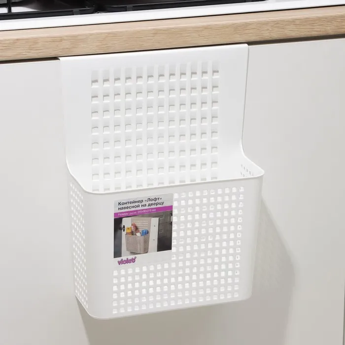 Корзина для хранения из пищевого пластика для организации пространства на кухне, за рабочим местом или в ванной комнате – как дополнительная зона хранения в шкафах для моющих средств и бытовой химии, для кухонной утвари, для журналов, газет, книг и пр. Контейнер навешивается на любую дверцу шкафа или квадратный рейлинг. Узор «клетка» на корпусе контейнера универсален для самых разнообразных стилей интерьера и делает изделия серии «Лофт» легкими и проветриваемыми.