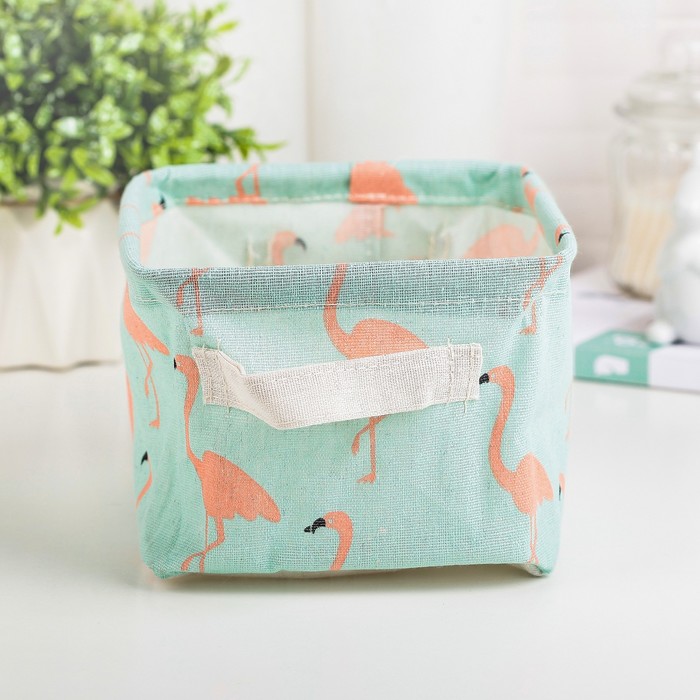 Яркая корзина для хранения «Фламинго» из прочного текстиля с удобными ручками. Компактные размеры идеально подходят для хранения домашних мелочей, косметики или детских принадлежностей.