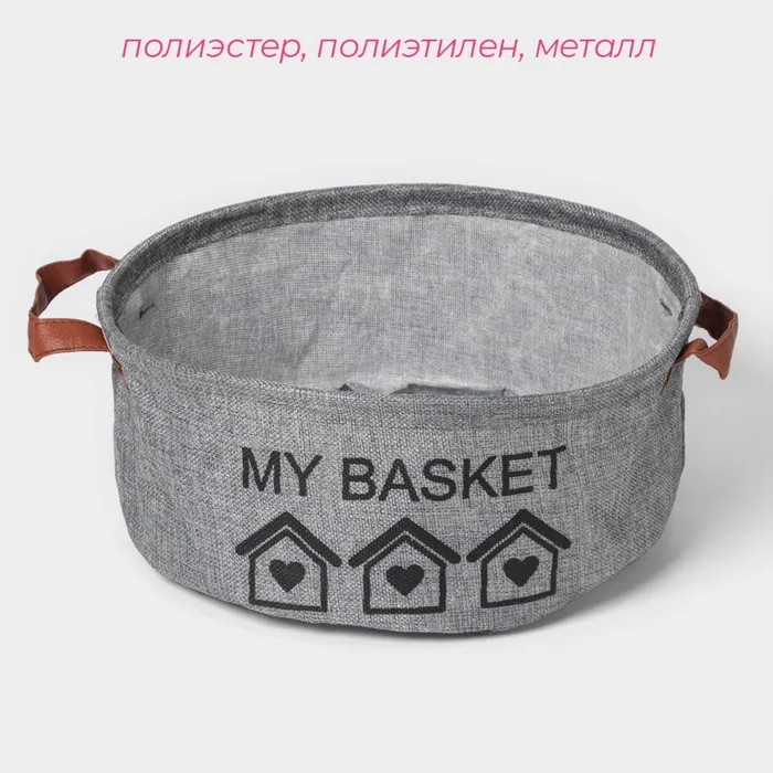 Корзина для хранения с ручками круглая Доляна My Basket, 30×30×13 см, серая — Характеристики