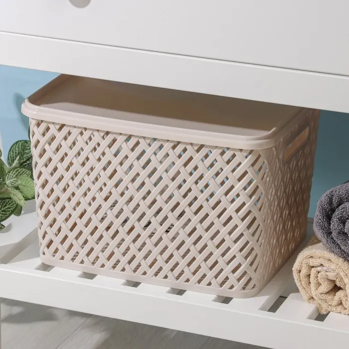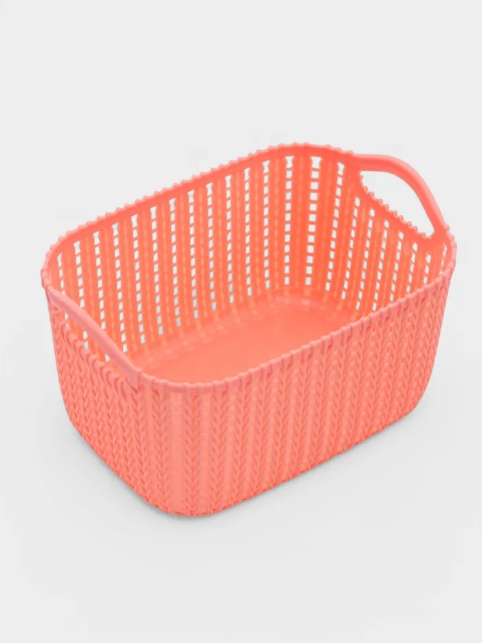 Корзина для хранения с ручками «Плетение», пластик, 24×16×13 см, персиковая — Характеристики