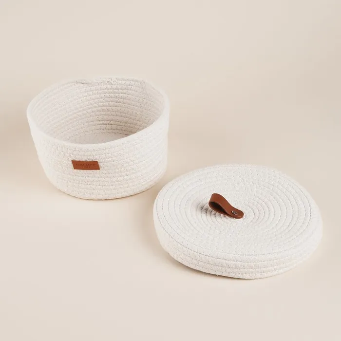 Сочетание хлопка и натуральных материалов делает корзину экологичной и долговечной, а также приятной на ощупь. Она не только украшает ваш дом, но и является функциональным решением для хранения различных предметов. С её помощью можно организовать порядок в гардеробной, разместить полотенца на кухне или аккуратно хранить игрушки в детской комнате.