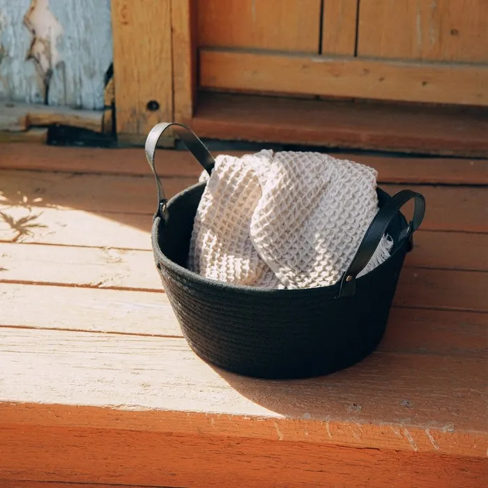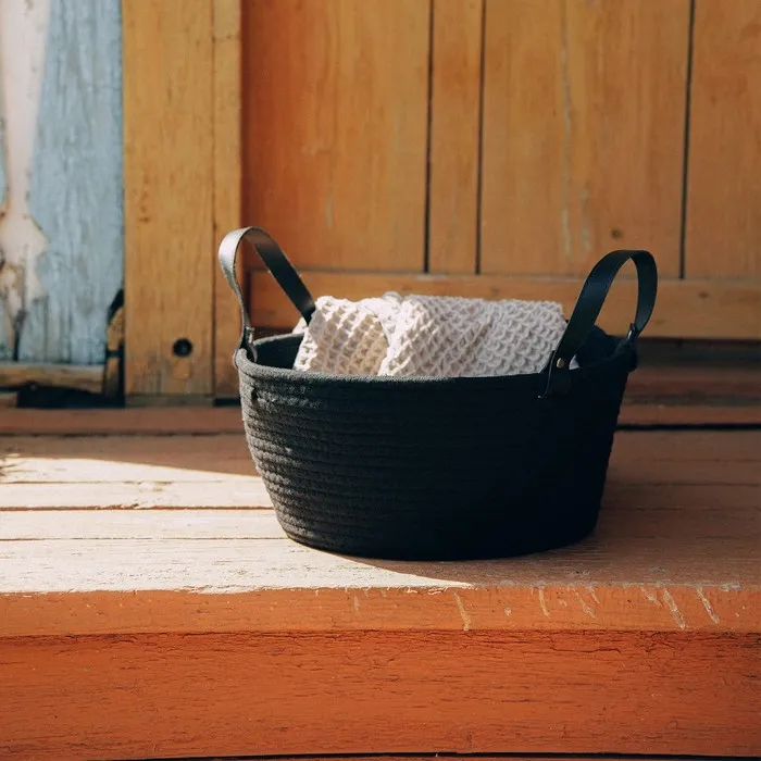 Изготовленная вручную, эта корзина отличается высоким качеством плетения и долговечностью. Её округлая форма и отсутствие крышки облегчают доступ к содержимому, при этом она остаётся достаточно компактной для размещения на полках или в шкафах.