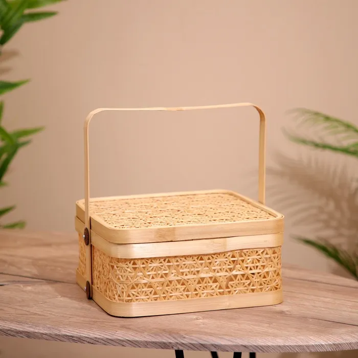 Корзинка плетёная с крышкой, 25×25×25 см, бамбук
