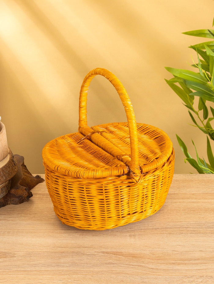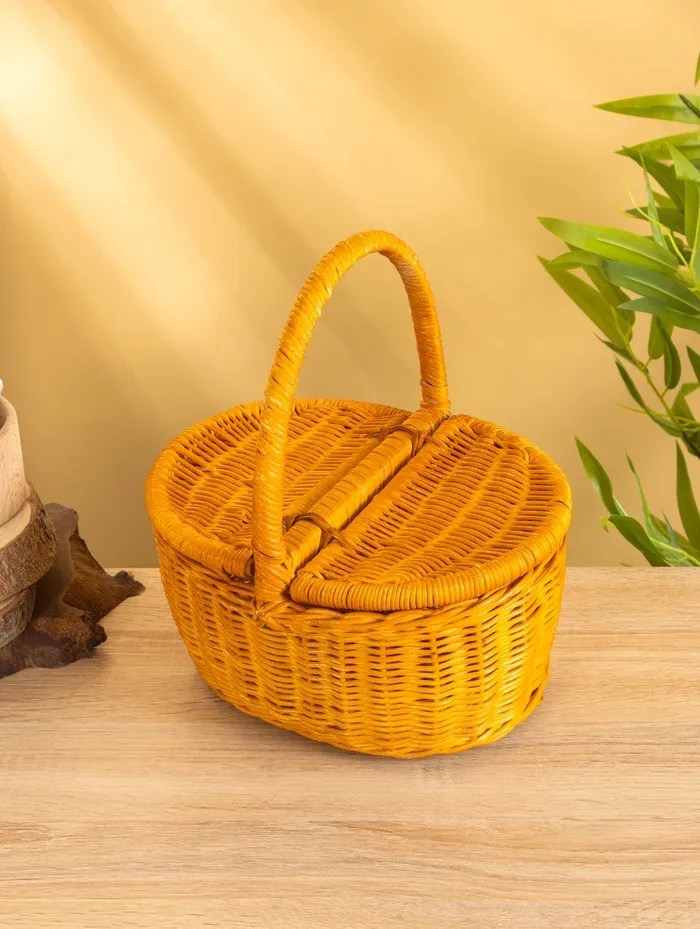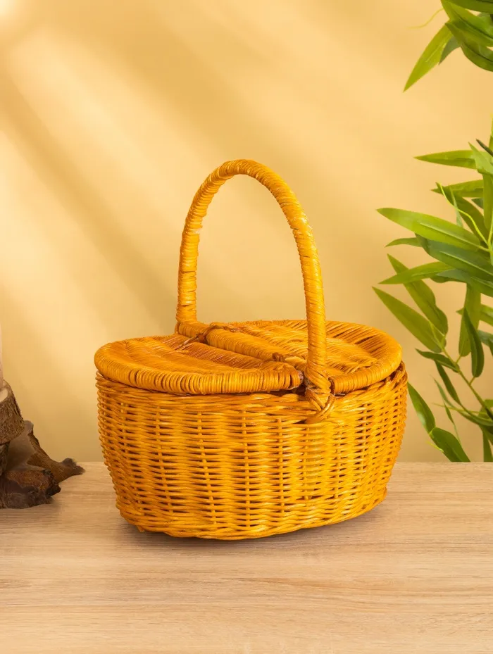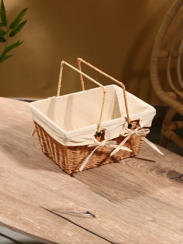 Корзина для пикника с тканевым подкладом, 27×20×14 см, ротанг