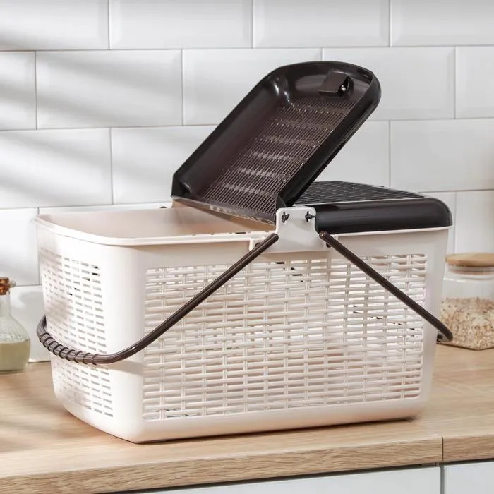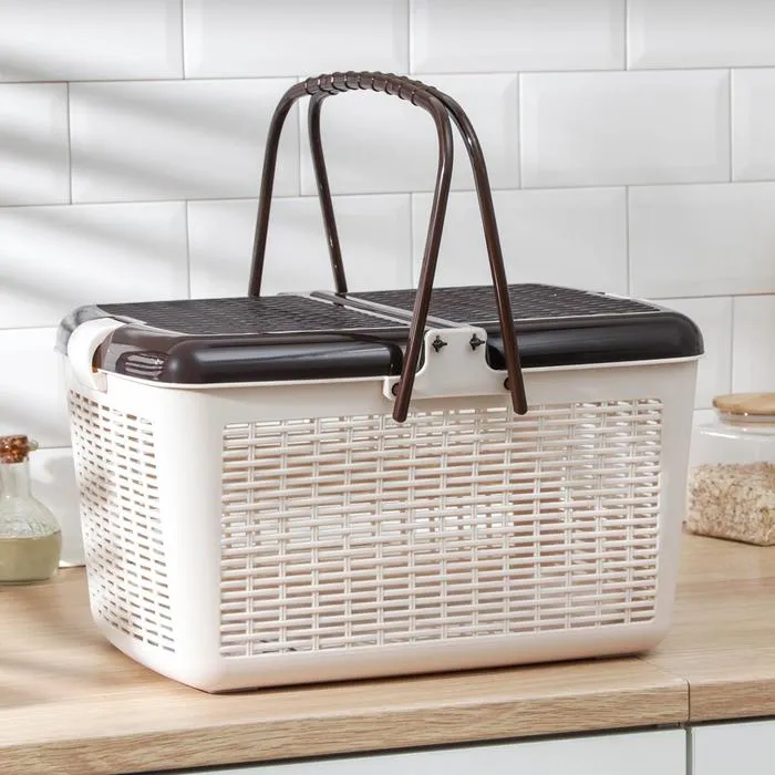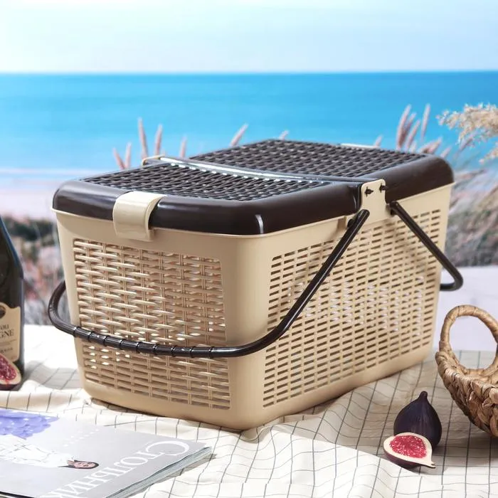Корзина для пикника Альтернатива, 45×30×24 см, с ручками, пластик, светло-коричневая — Характеристики