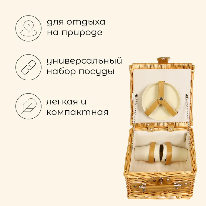 Корзина для пикника maclay, плетёная, 2 персоны, 27х26х16 см, лоза — Характеристики