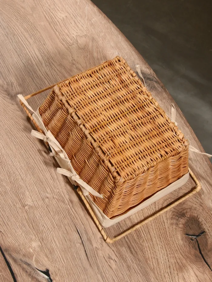 Корзина выполнена в классическом коричневом цвете, который подчеркивает натуральность материала и легко сочетается с любым стилем. Прямоугольная форма обеспечивает устойчивость, а прочные ручки из того же ротанга делают переноску комфортной даже на большие расстояния. Тканевый подклад не только защищает содержимое, но и добавляет уюта — теперь ваши закуски останутся в идеальном состоянии до самого момента трапезы.