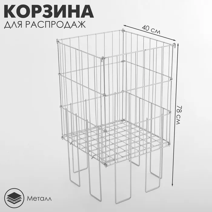 Корзина для распродаж размером 40х40х78 см — это удобное и стильное решение для организации товаров на распродажах, выставках или в магазинах. Компактные размеры позволяют эффективно использовать пространство, при этом корзина достаточно вместительна для хранения различных товаров.