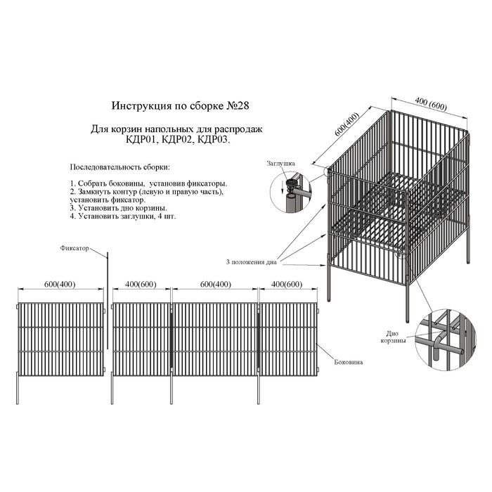 Одной из ключевых особенностей этой корзины является регулируемое дно, что позволяет изменять её глубину и адаптировать под различные типы товаров. Это делает корзину универсальной и удобной для различных нужд.