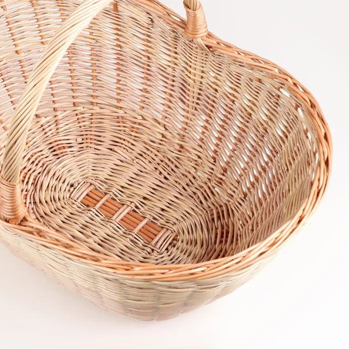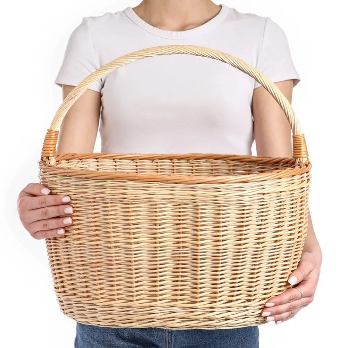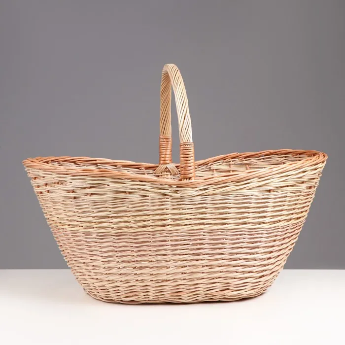 Плетёная корзина – выполнена из ивовой лозы. Имеет прочное основание и боковины, а также надёжные ручки. Ивовая лоза обработана специальным защитным средством и покрашена.