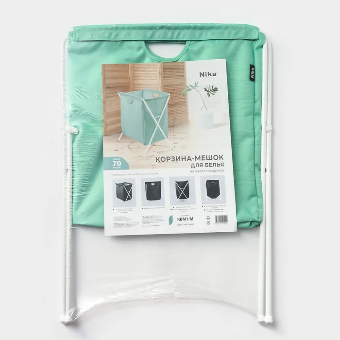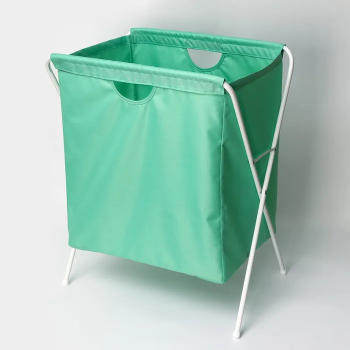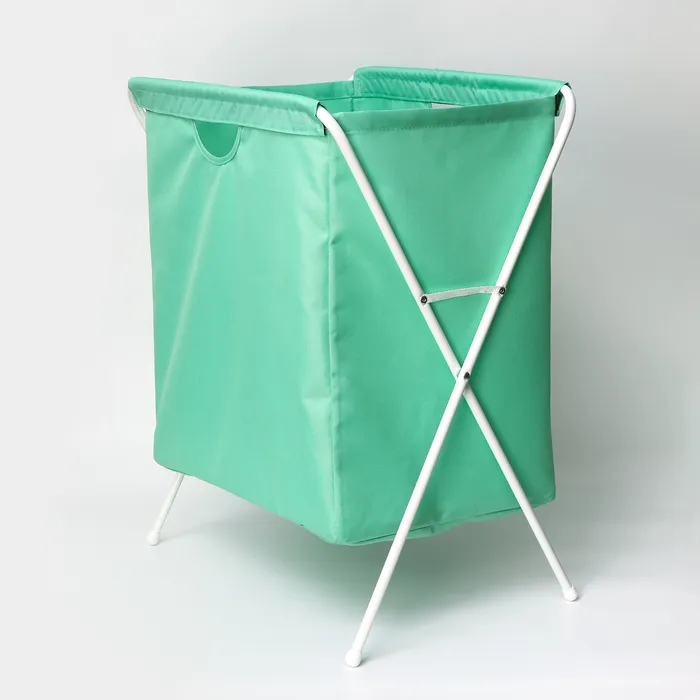 Корзина-мешок для белья на металлокаркасе, 53×39×62 см, мятная — Характеристики