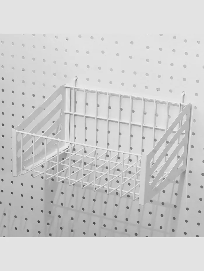 Металлическая корзина для перфорации белого цвета оптимальна для хранения и организации мелких предметов в рабочих и бытовых пространствах. Компактные размеры обеспечивают удобство размещения на стандартных перфорированных панелях, упрощая доступ к содержимому и поддержание порядка.