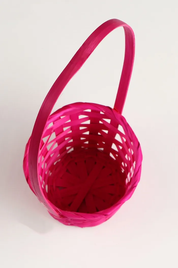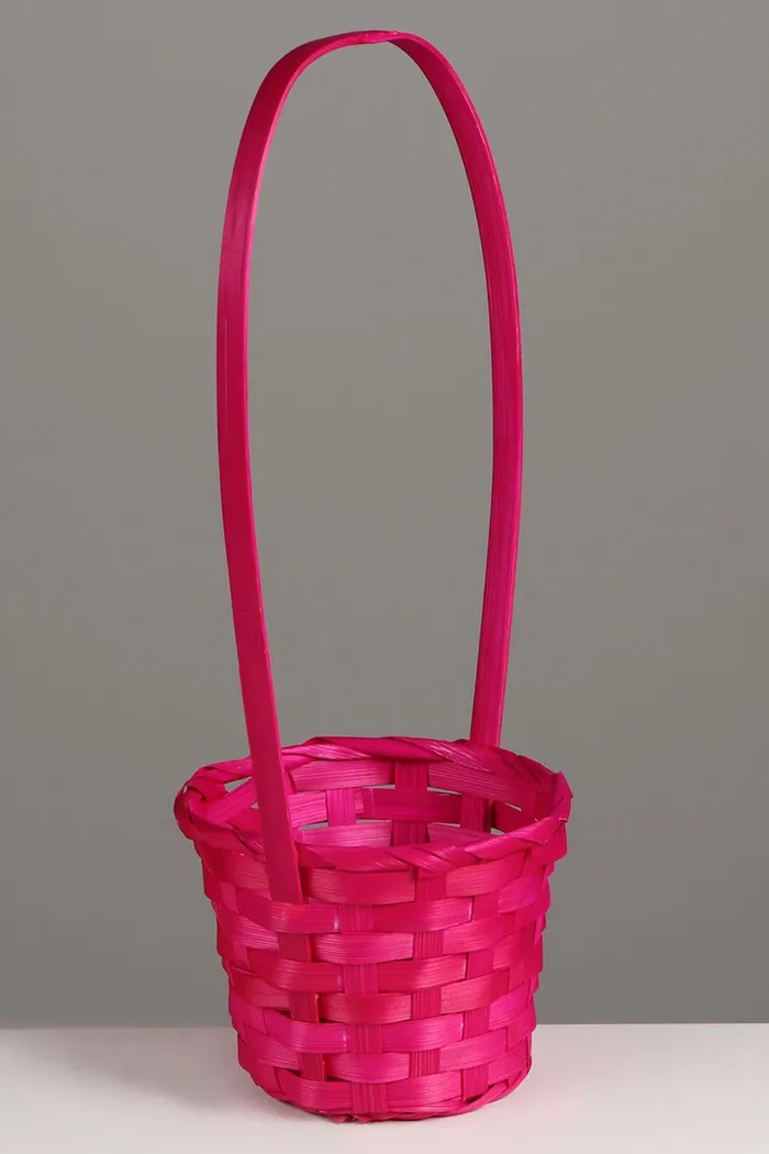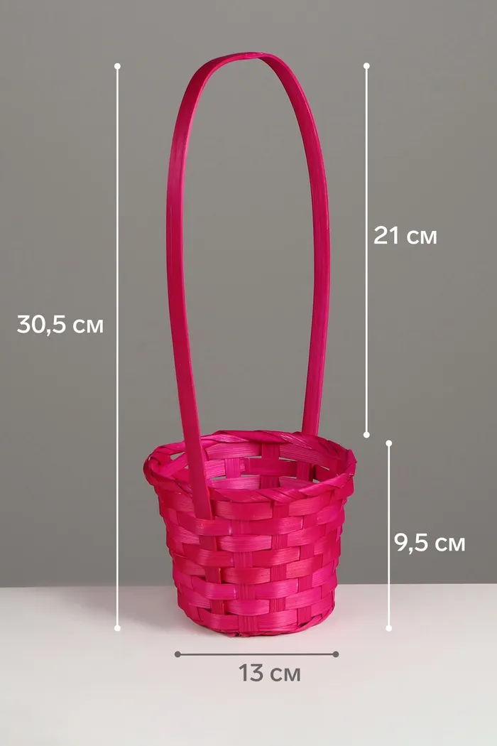 Корзина плетёная, 13×13×9.5 см, ручка h=21 см, бамбук, розовая — Характеристики