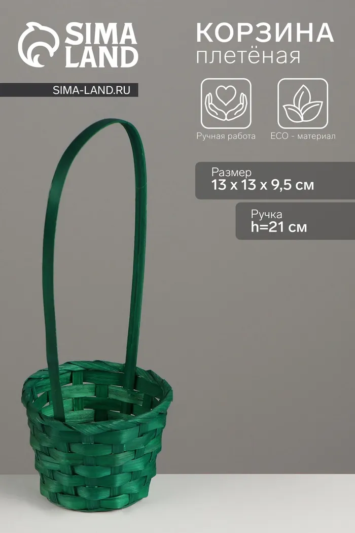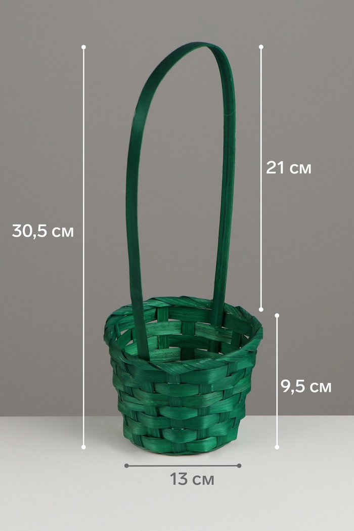 Корзина плетёная, 13×13×9.5 см, ручка h=21 см, бамбук, зелёная — Характеристики