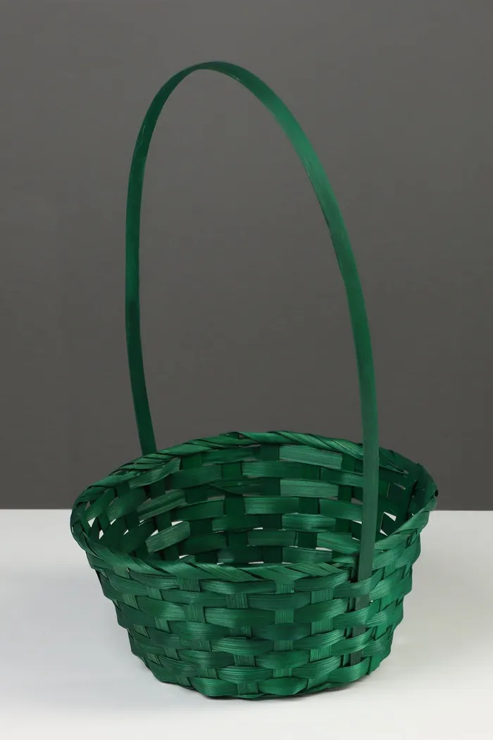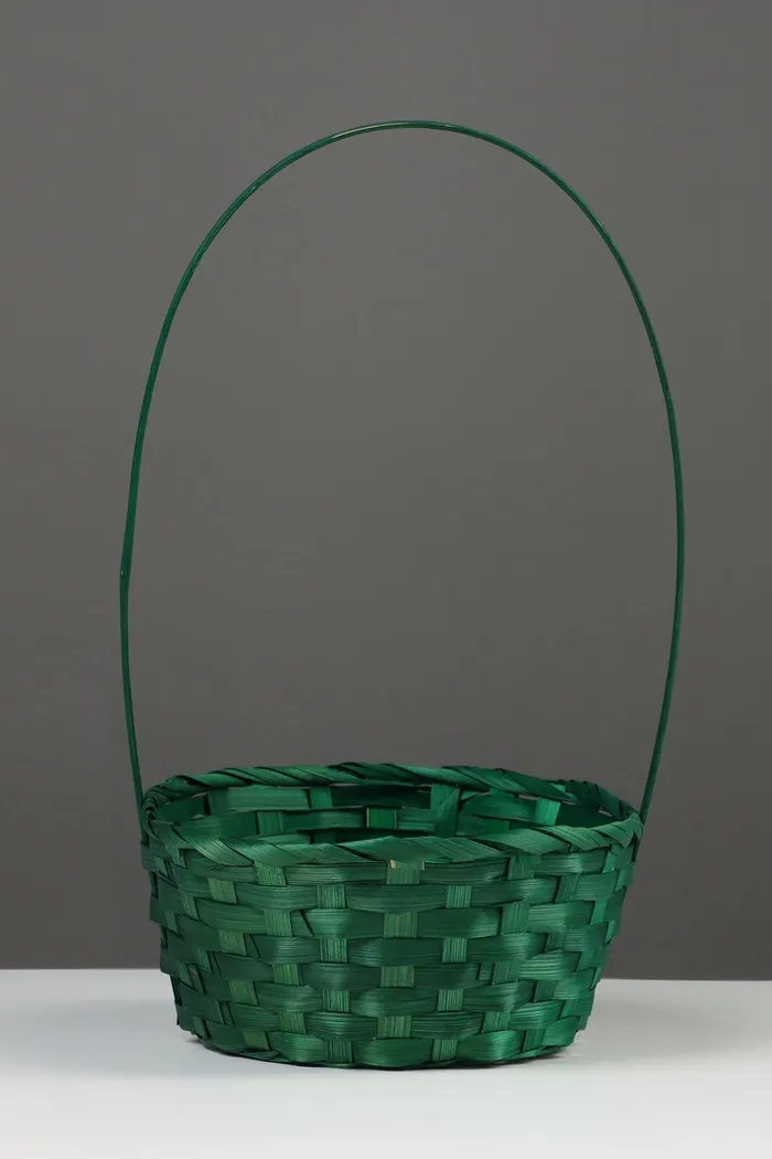Корзина плетёная, 20×20×9 см, ручка h=25 см, бамбук, зелёная — Характеристики