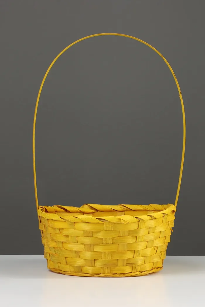 Корзина плетёная, 20×20×9 см, ручка h=25 см, бамбук, желтая — Характеристики