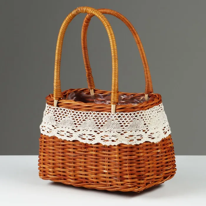 Корзина плетёная, 20×20×9 см, ручка h=25 см, ива, красная — Характеристики