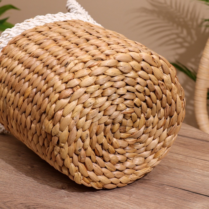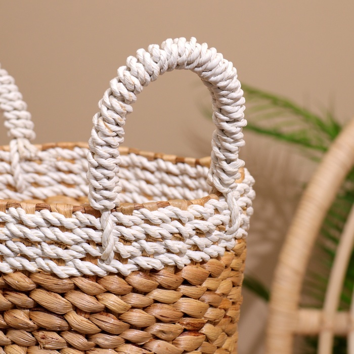 Плетёная корзинка ручной работы сделана из водного гиацинта. Поверхность обработана водоотталкивающим и антибактериальным покрытием, поэтому изделия можно использовать в ванных комнатах.
