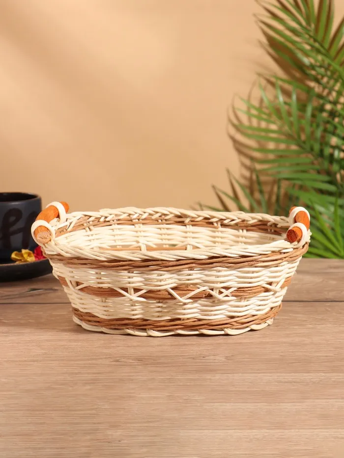 Корзинка для фруктов и хлеба Доляна «Огайо», 31×21×5 см, пластик, плетёная, овальная, коричневая