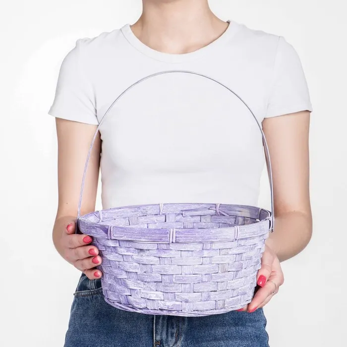 Корзина плетёная, 26×12/30 см, бамбук, сиреневая, розовая, МИКС — Характеристики