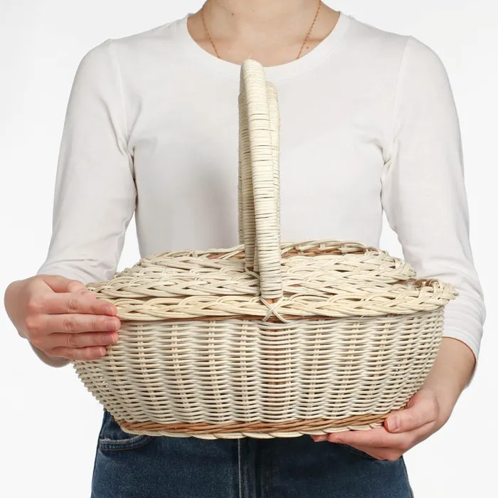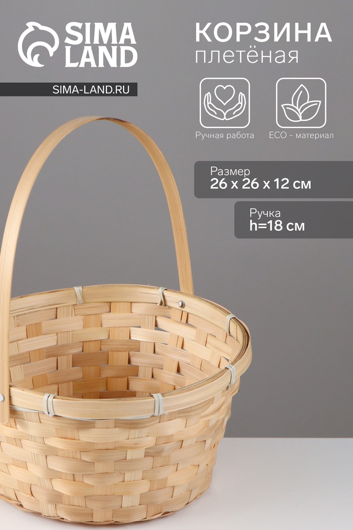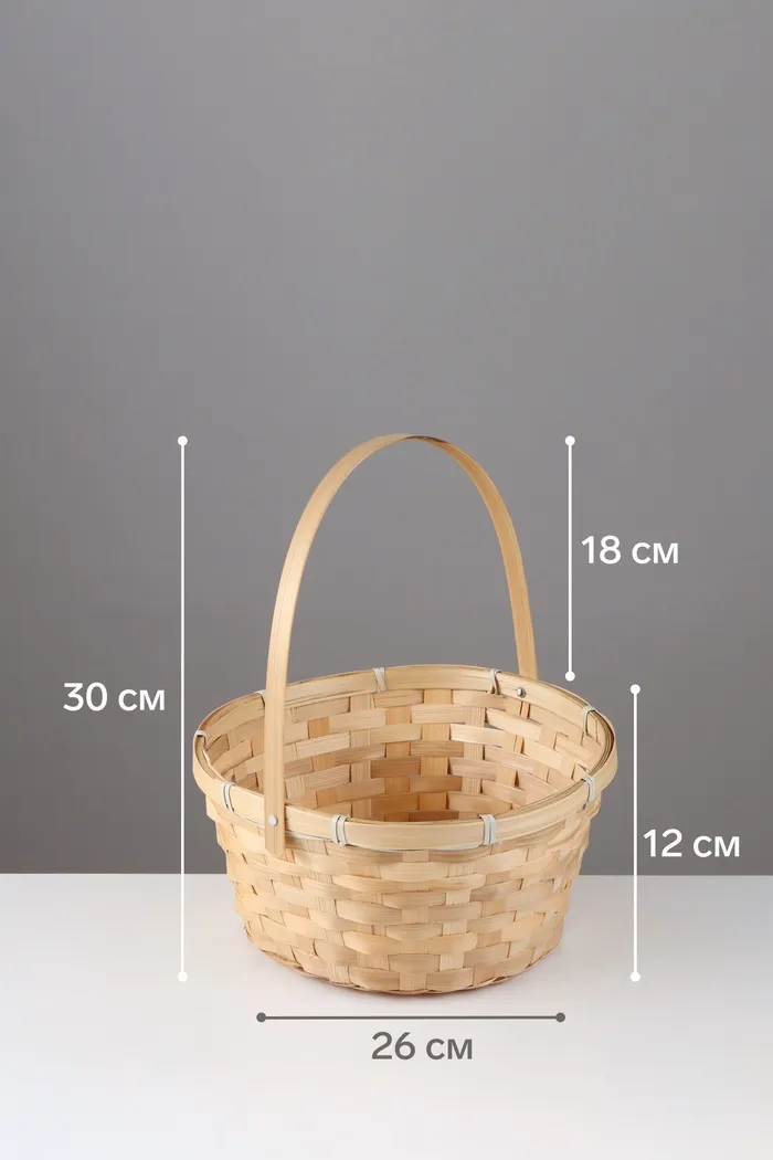 Корзина плетёная, 26×26×12 см, ручка h=18 см, бамбук, натуральный цвет — Характеристики