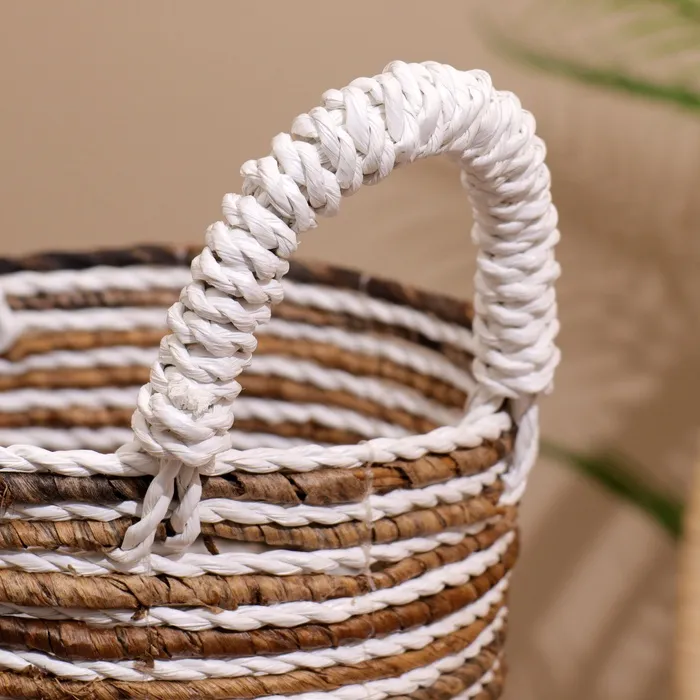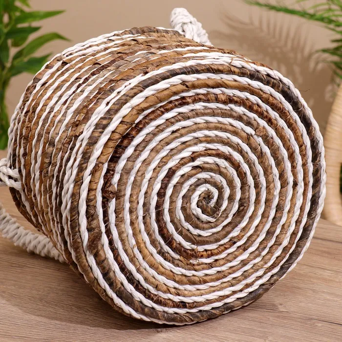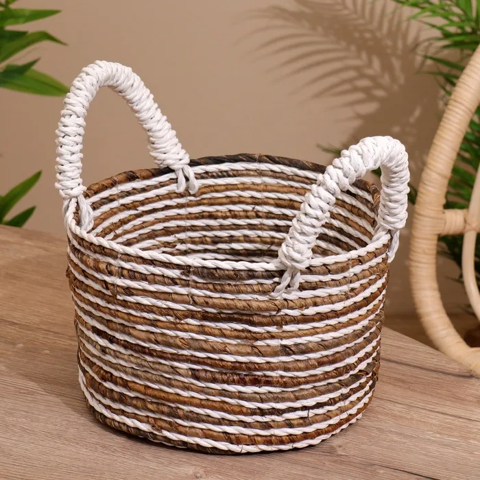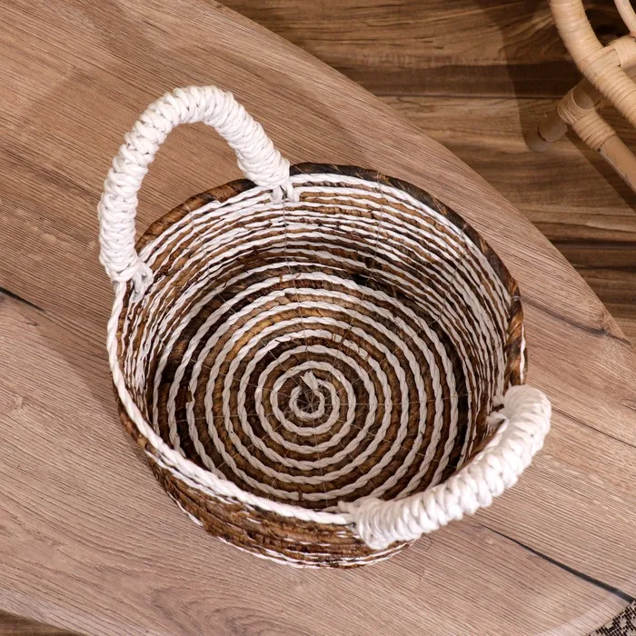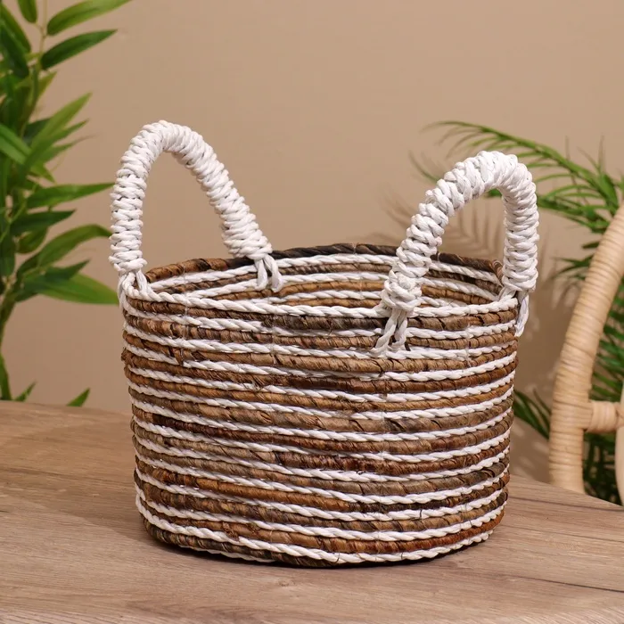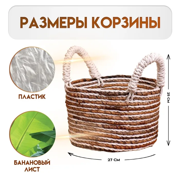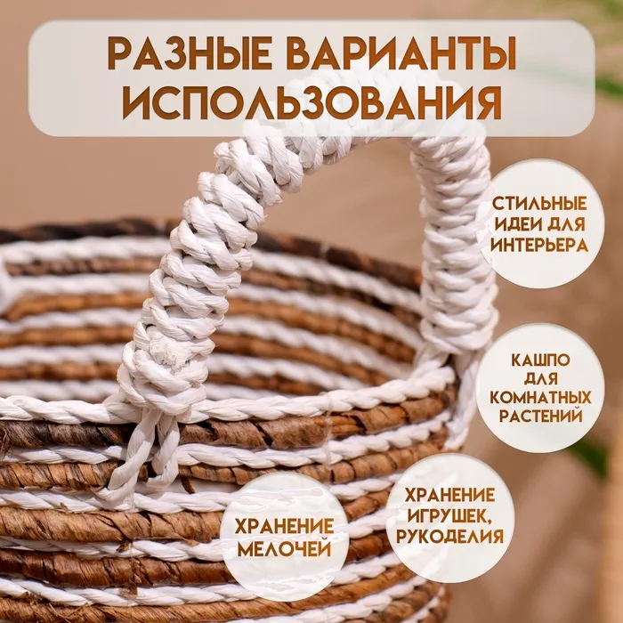 Плетёная корзинка сделана из экоматериала вручную, поэтому двух одинаковых экземпляров не найти.
