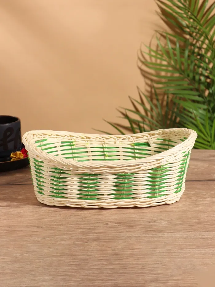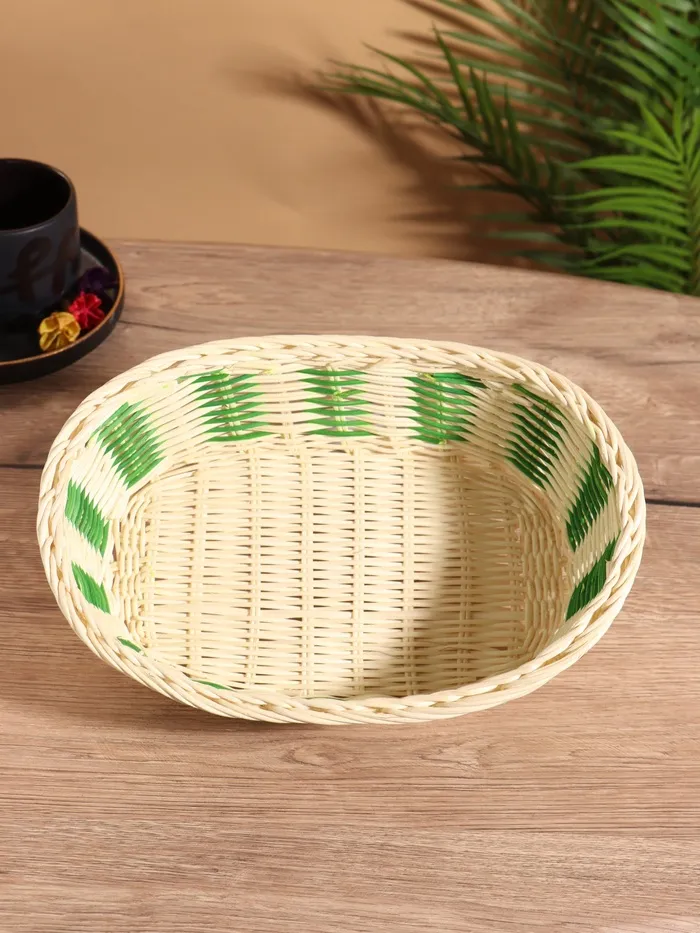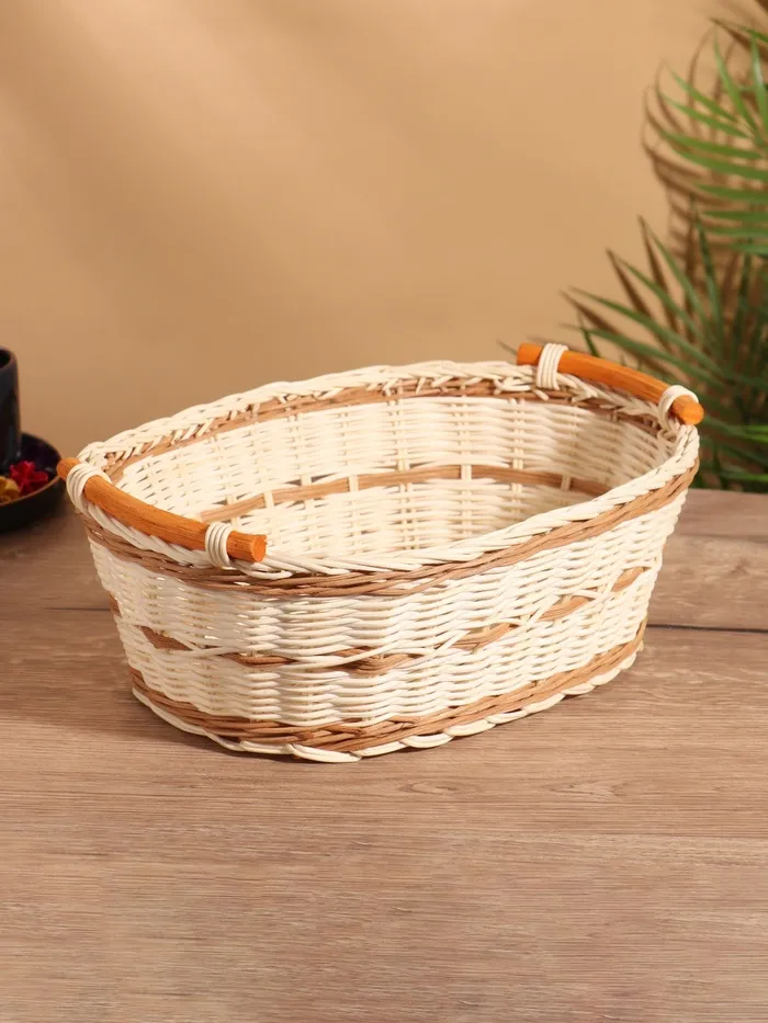 Корзинка для фруктов и хлеба Доляна «Ваниль», 21×6.5 см, пластик, плетёная, молочная