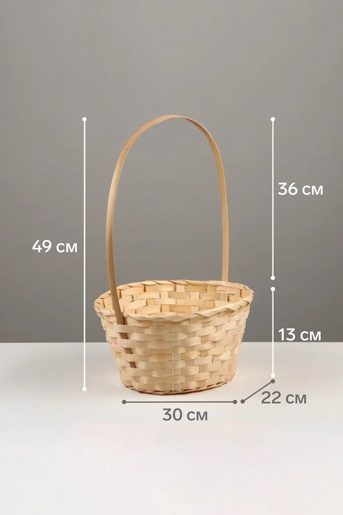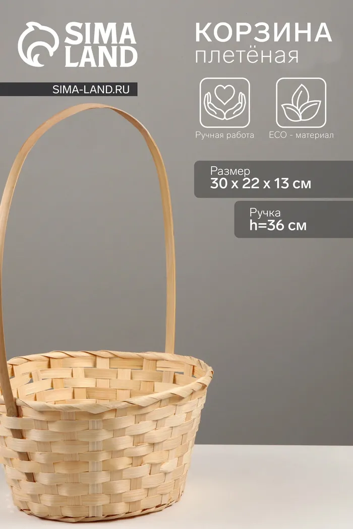 Корзина плетёная, 30×22×13 см, ручка h=36 см, бамбук, ива, натуральный цвет — Характеристики
