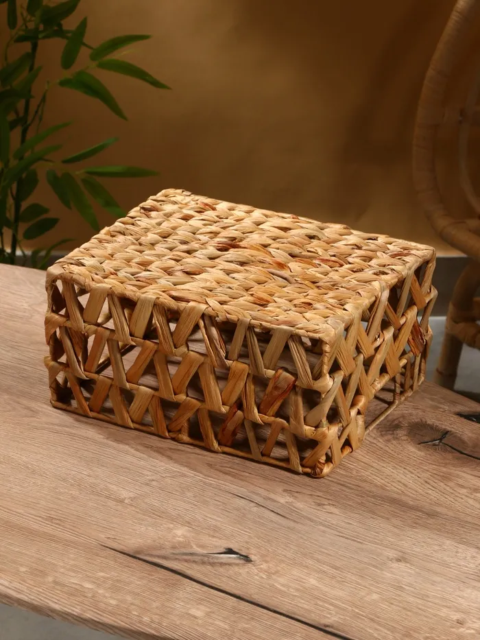 Природная эстетика твоего интерьера! Прямоугольная плетеная корзина из водного гиацинта – изысканный элемент декора, который органично впишется в любой стиль.