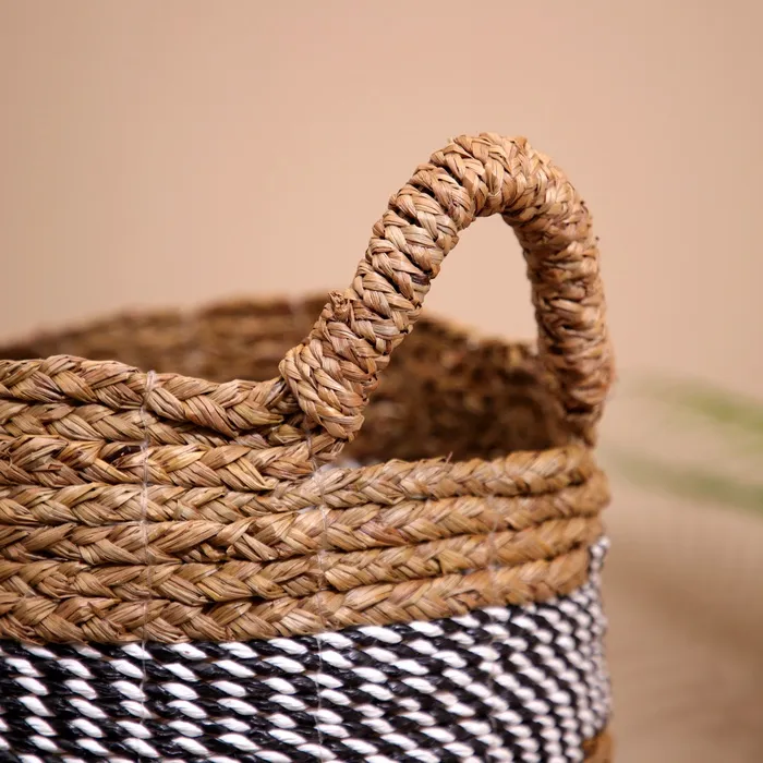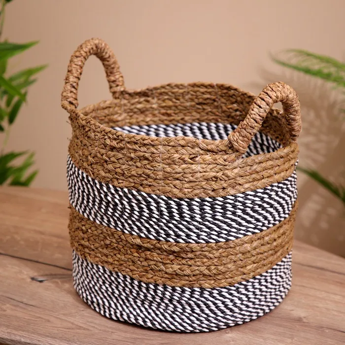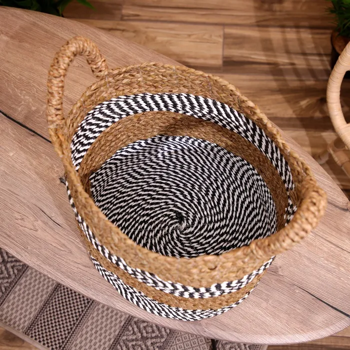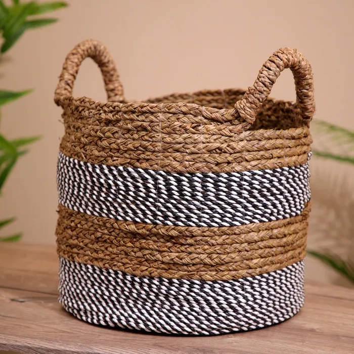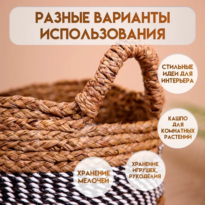 Плетёная корзинка сделана из экоматериала вручную, поэтому двух одинаковых экземпляров не найти.