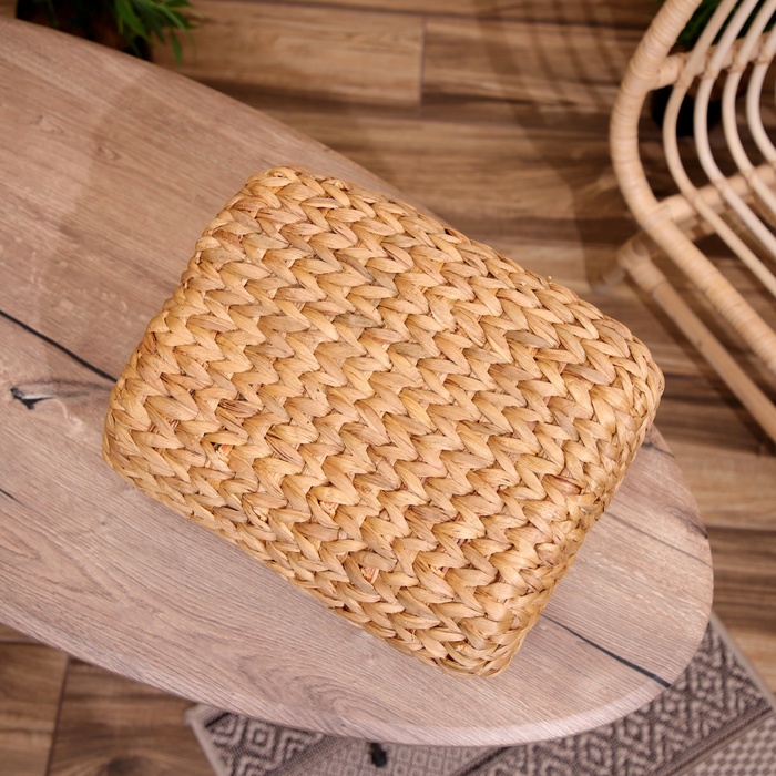 Плетёная корзинка ручной работы сделана из водного гиацинта. Поверхность обработана водоотталкивающим и антибактериальным покрытием, поэтому изделия можно использовать в ванных комнатах.