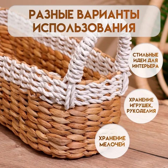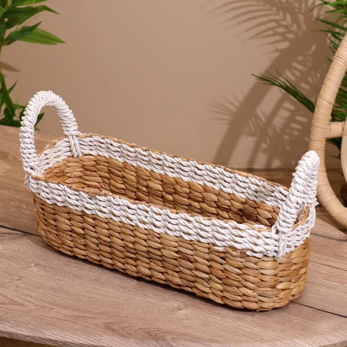 Плетёная корзинка ручной работы сделана из водного гиацинта. Поверхность обработана водоотталкивающим и антибактериальным покрытием, поэтому изделия можно использовать в ванных комнатах.