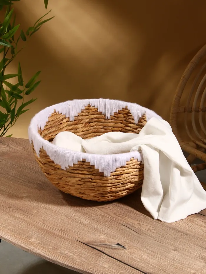 - Эстетика и прочность: плетение из водного гиацинта не только приятно на ощупь, но и отличается долговечностью. Корзина сохраняет форму и цвет на долгое время, даже при активной эксплуатации.