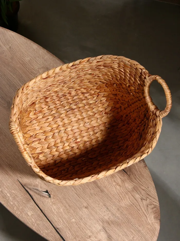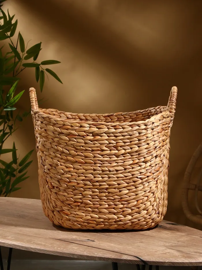 Плетёная корзина из водного гиацинта — натуральное решение для хранения и декора. Овальная форма и бежевый оттенок органично вписываются в современные интерьеры, а прочная конструкция выдерживает ежедневное использование.