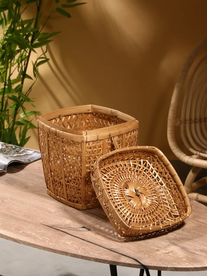 Корзина плетёная «Баскет», 24×24×28 см, бамбук, светлая