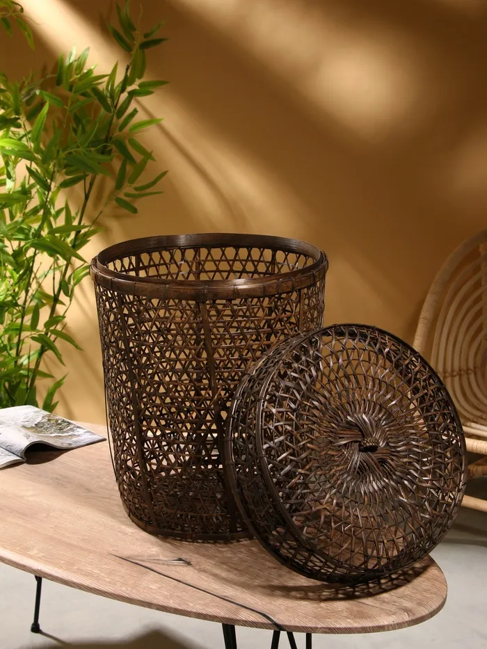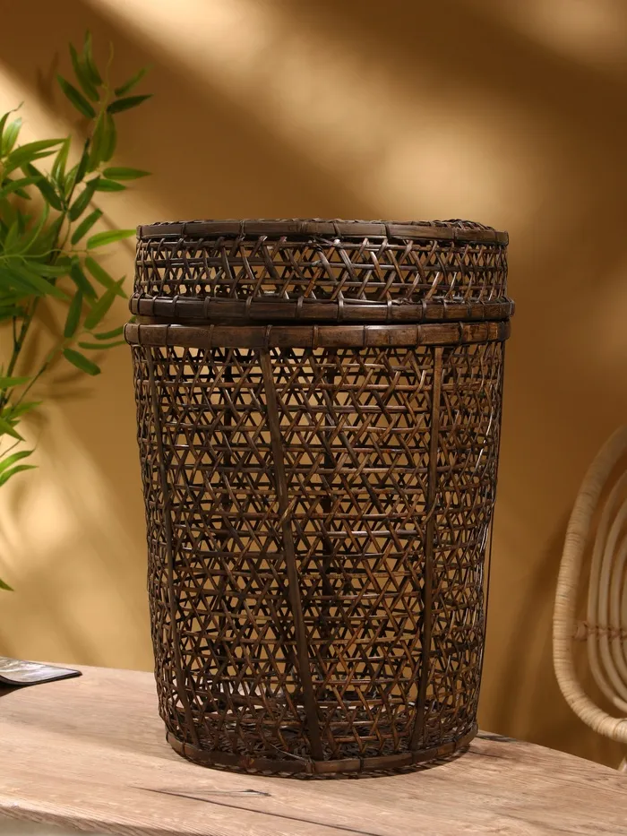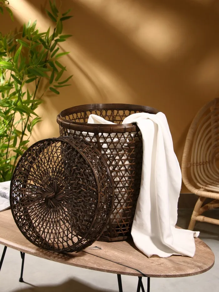 Корзина плетёная «Баскет», 39×39×50 см, бамбук, тёмная