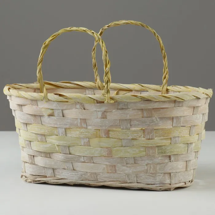 Корзина плетеная, D25 х 18 х 11/19 см, жёлтая, бамбук